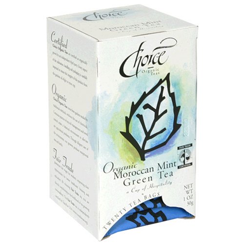 Description : Fair Trade certified. Choice Organic Moroccan Mint Green Tea is blended from carefully selected green teas and the spearmint favored in North Africa. It is a vitalizing refreshment in Saharan heat, and a perfect cup with which to welcome guests. A cup of hospitality and quiet grace, with only half the caffeine of other green teas. Choice Organic Teas are certified as organically grown by an independent third party. Every aspect of the cultivation, handling and packaging is carefully inspected to insure the integrity of this product from the gardens of origin to your cup. Choice Organic Teas come from garden tended by traditional methods, without the use of chemicals. Conscious practice of top soil management and weed control create a balanced environment to alleviate any agricultural problems. Through diligent care of the environment, our growers produce exceptional teas and herbs. Fair Trade guarantees fair wages for workers, improving their opportunities for better healthcare, hosing and education. By choosing Fair Trade tea, you are directly contributing to the livelihood of tea growing communities. This Fair Trade tea is independently certified by TransFair USA. USDA organic. Certified organic by QAI, Inc. The tea bags in this package are made with unbleached natural fibers. A special environmentally-safe, high barrier envelope protects the freshness and flavor of the tea.
