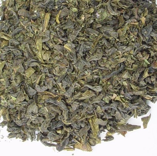 Strong spearmint leaves well blended with green tea. At first I felt that mint taste in the brewed tea was not strong enough (even though the mint is highly aromatic when you smell the loose leaf tea), but as I drink it I think that the blend is quite nice. The mint is not dominant in the brewed tea (less minty than, say, Celestial Seasonings bagged Green Tea Mint), but it is definitely present. An excellent value.