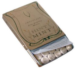 Description : 12 pack of the classic chocolate hint mint tins packaging their own display box. Strong mints, smooth as silk, sugar based. No gelatin, no aspartame and no animal ingredients.