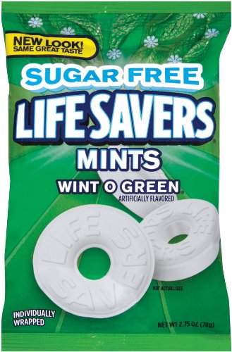 Description : 0 g Sugar Carbs. Reduced Calorie. 40% Fewer Calories than regular Wint - O - Green Hard Candy. Individually wrapped. South Beach Diet recommended. Discover the delicious taste of sugar free Wint - O - Green Life Savers. Each refreshing piece is not only sugar free, but also reduced in calories. Life Savers candy the candy with the hole!