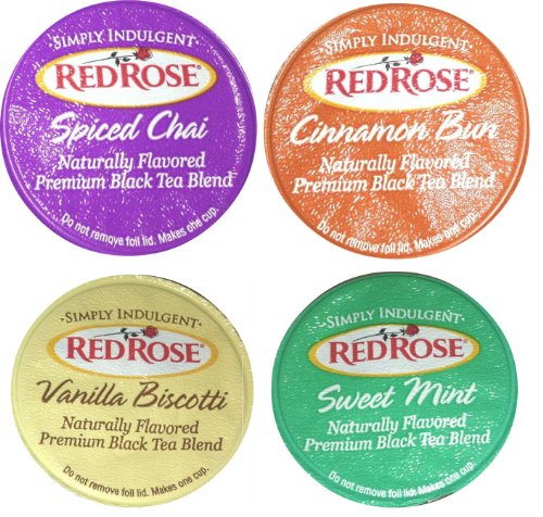 - NEW! Red Rose TEA - 12 K-cups - Cinnamon Bun, SPiced Chai, Sweet Mint & Vanilla Biscotti (on rare occasions due to a stock issue you may receive another brand k-cup