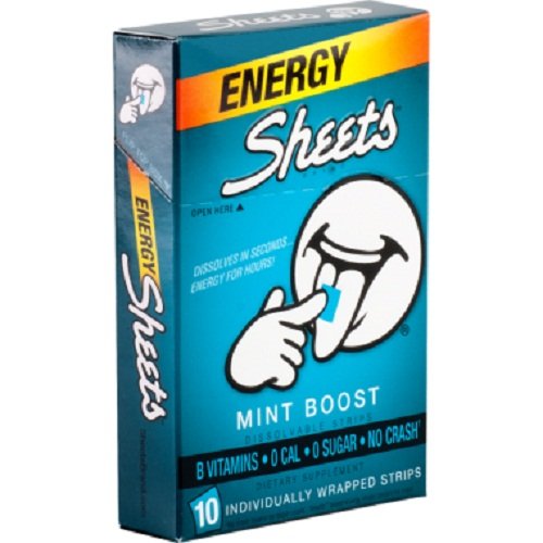 Description : Sheets Brand Energy Strips are packed with nutrients, vitamins, and other active ingredients that dissolve quickly on your tongue. Get that energy boost you need, any time of day or night for that on-the-go lifestyle! Individually pouched, fits right in your wallet. No high calorie energy drinks or pills needed here! Try an Energy Sheet instead! It's the NEW way to do ENERGY! In savory Mint flavor!
