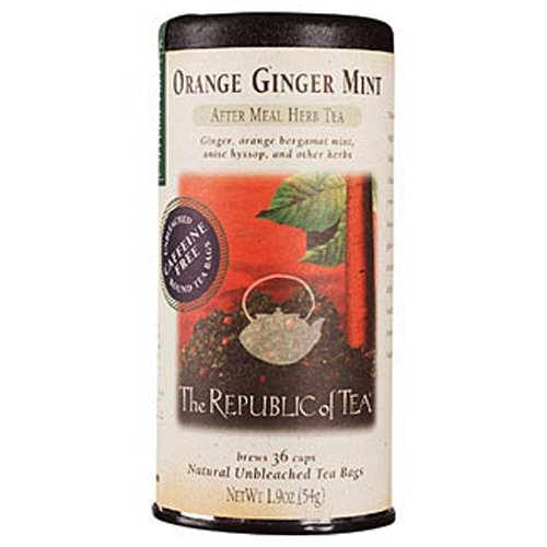 Description : After meal herb tea ginger is spicy on the tongue yet soothing to the digestive system. Mint has power to calm a stormy stomach with sweetness. This herb combo with its orange bergamot mint creates a lusciously fruity cup. Founded in 1992, The Republic of The world for their worthiest leaves. Our mission was and is to see these teas steaming in the cups of men, women and children everywhere, and to emphasize a sip by sip rather than gulp by gulp lifestyle. A socially and environmentally responsible business, The Republic of Tea is dedicated to sharing our prosperity by developing products to support worthy organizations, including Susan G. Komen for the cure, the prostate cancer foundation, sunny hills’ services and room to read. We are also a member of the ethical tea partnership.